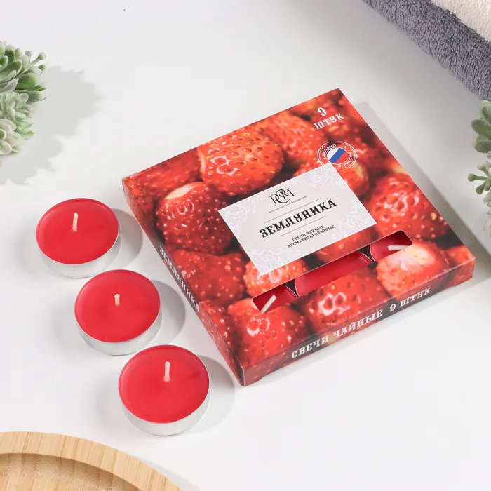 Набор чайных свечей ароматических "Земляника", 9 штук