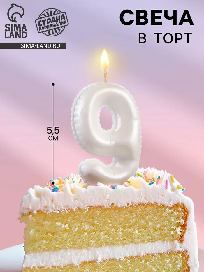 Свеча в торт «Шары», цифра 9, жемчужный, 5.5 см
