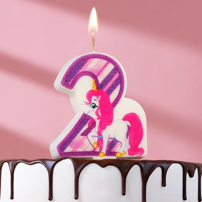 Свеча в торт «Единорог», цифра 2, фиолетовая, 6.5 см