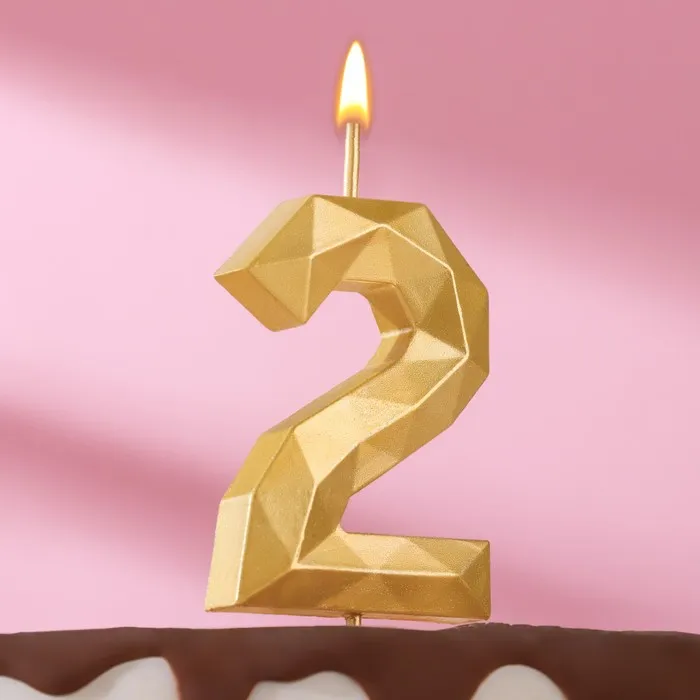 Свеча в торт на шпажке «Многогранник», цифра 2, 7 см, золото
