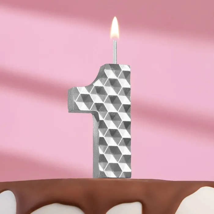Свеча в торт на шпажке «Соты», цифра 1, 7 см, серебро