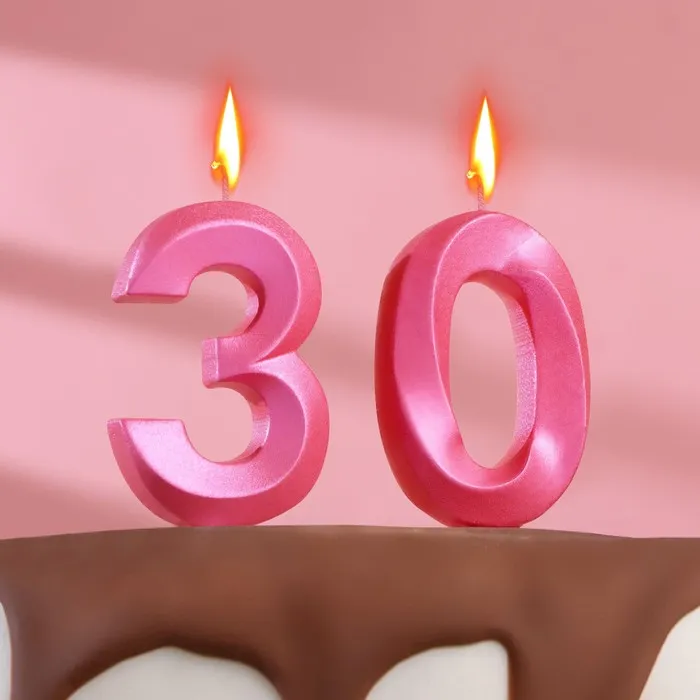 Свеча в торт юбилейная «Грань» (набор 2 в 1), цифра 30, розовый металлик, 6.5 см