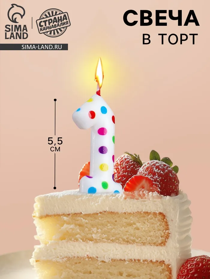 Свеча в торт на день рождения «Цифра 1», 5.5 см