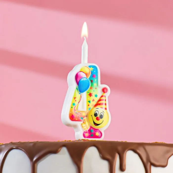 Свеча для торта «Смайлик с шарами», 9.9 см, цифра 4
