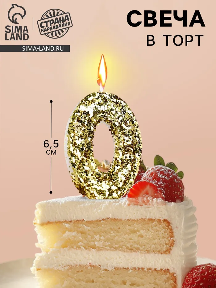Свеча в торт «Цифра 0», золотая, 5.5 см