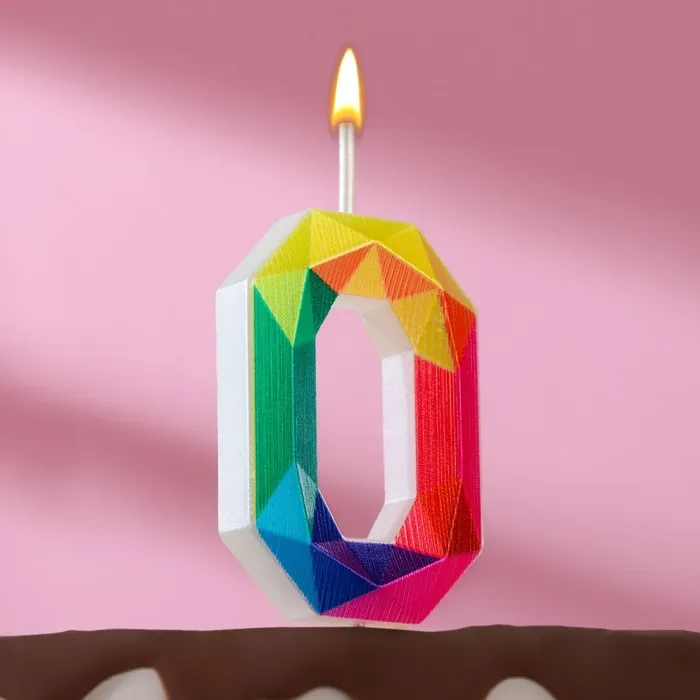 Свеча в торт на шпажке «Разноцветные грани», цифра 0, 5.3 см