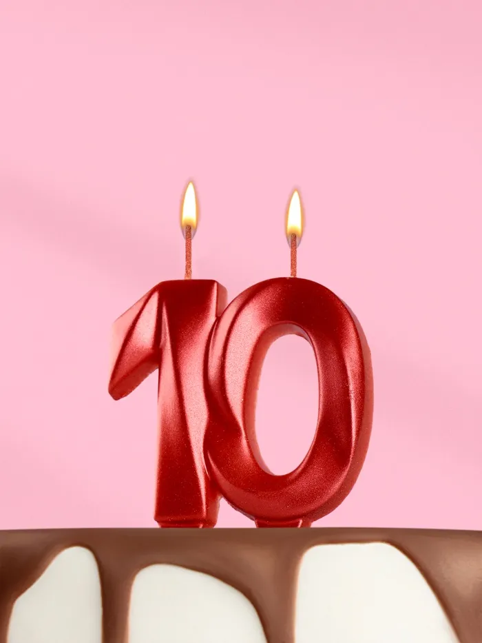 Свеча в торт юбилейная «Грань», цифра 10, красный металлик, 8 см