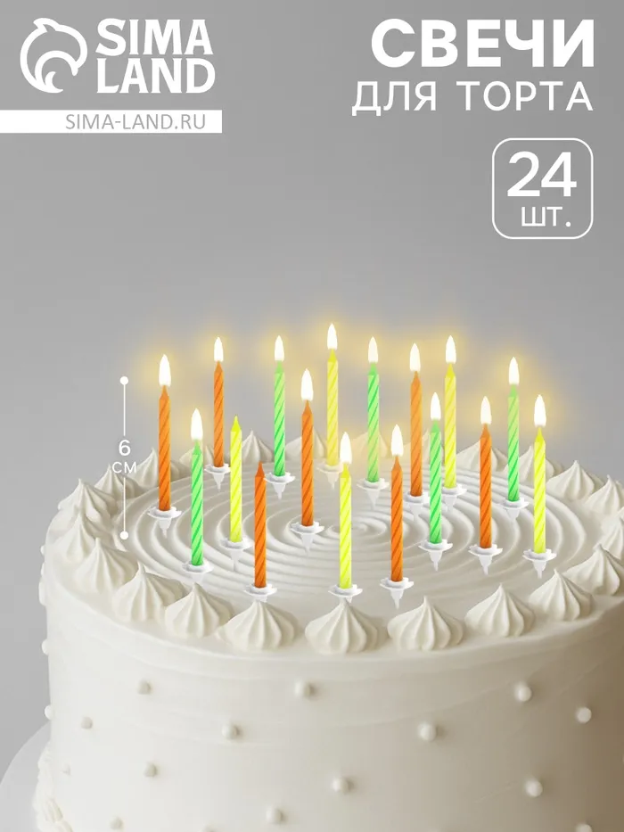 Свечи для торта «Красочные», 6 см, классические, набор 24 шт.