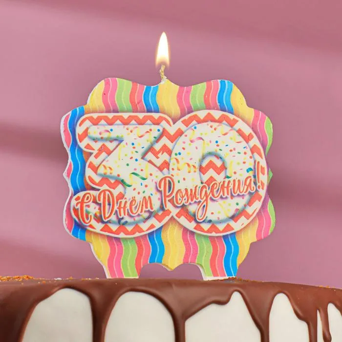 Свеча для торта цифра 30, ГИГАНТ, 7.5 см