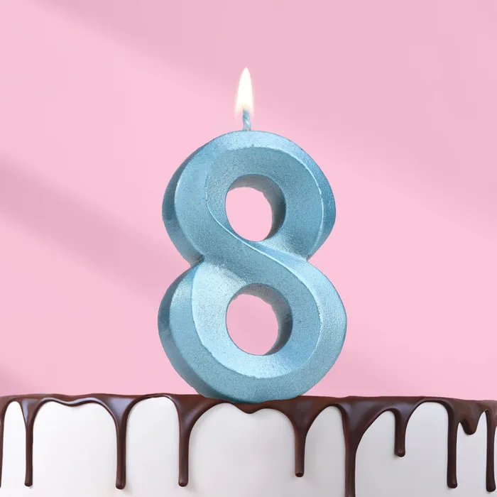 Свеча в торт «Грань», цифра 8, голубой металлик, 6.5 см