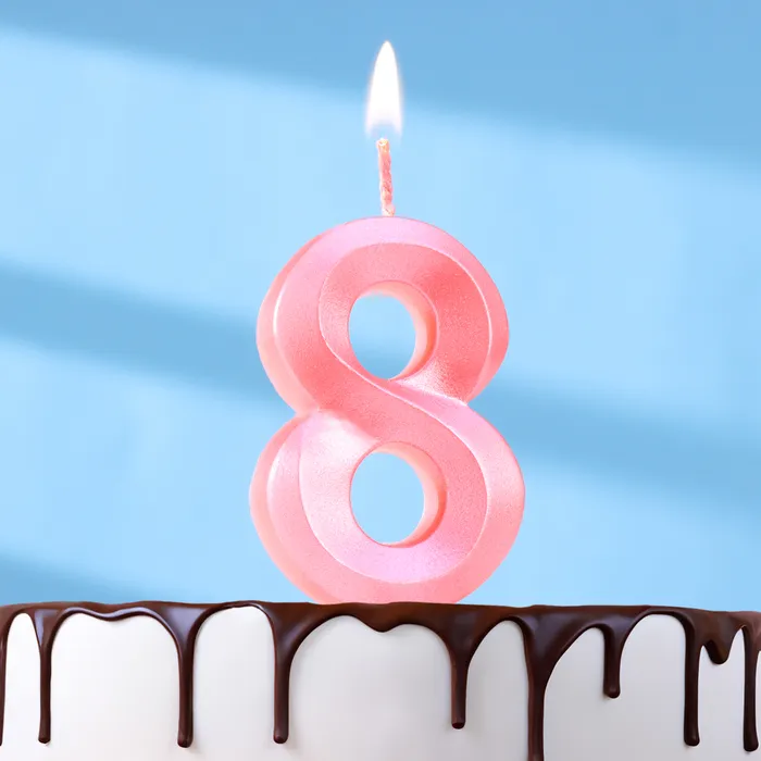 Свеча в торт «Грань», цифра 8, розовый металлик, 6.5 см