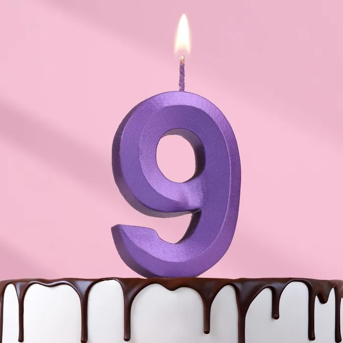 Свеча в торт «Грань», цифра 9, фиолетовый металлик, 6.5 см