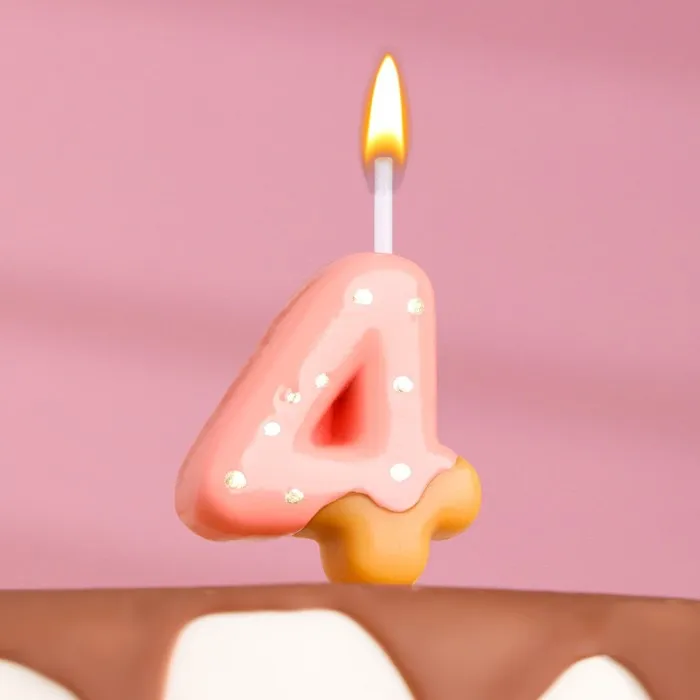 Свеча в торт «Клубничная глазурь», цифра 4, розовая, 3.8 см