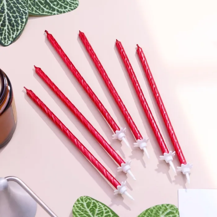Свечи для торта «Классические» с подставкой, 13 см, 6 шт., рубиновые