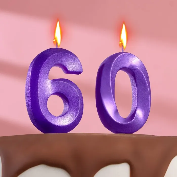 Свеча в торт юбилейная «Грань» (набор 2 в 1), цифра 60, фиолетовый металлик, 6.5 см