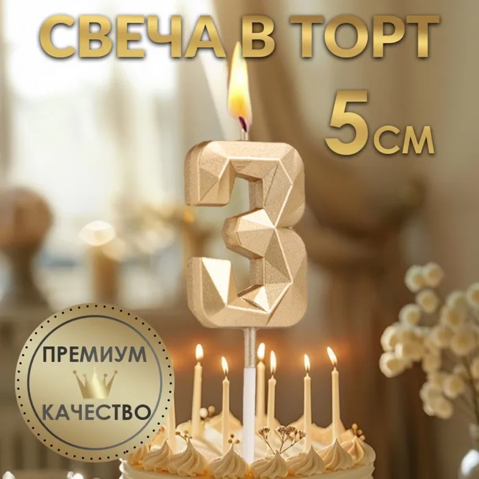 Свеча в торт на шпажке «Алмаз», цифра 3, шампань, 5×2.6 см