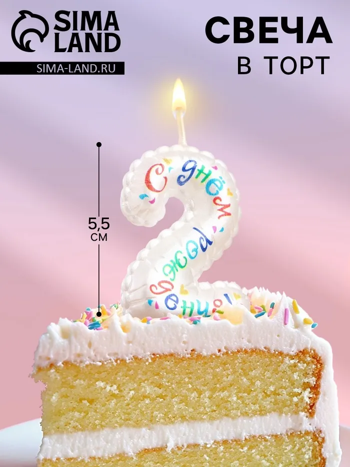 Свеча в торт на шпажке «С Днем Рождения! Цифра 2»