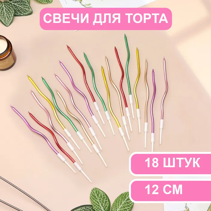 Свечи для торта витые «Серпантин»,12 см, 18 шт., коктейльные, разноцветные