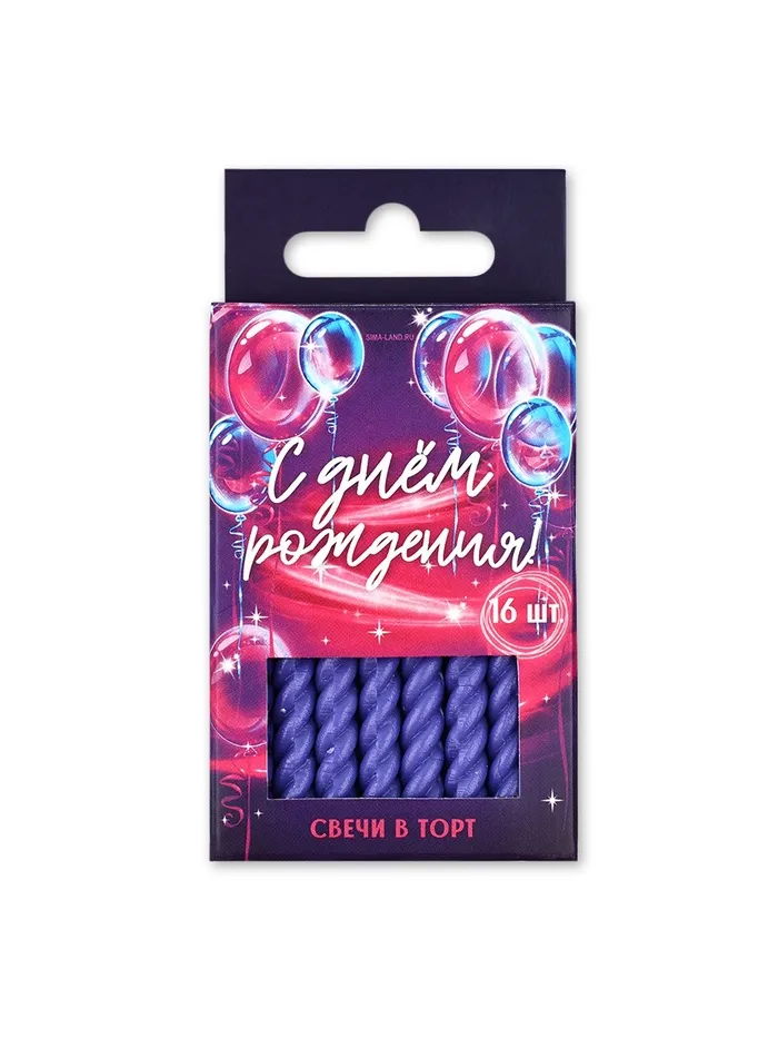 Свечи для торта, фиолетовые, 16 шт., 6.5×0.5 см