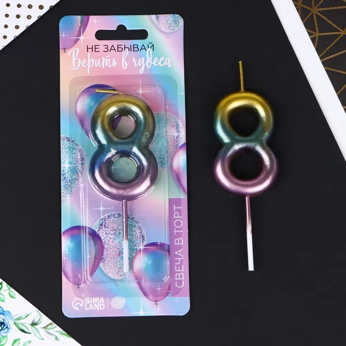 Свеча для торта, цифра «8», 10 х 3,5 см.