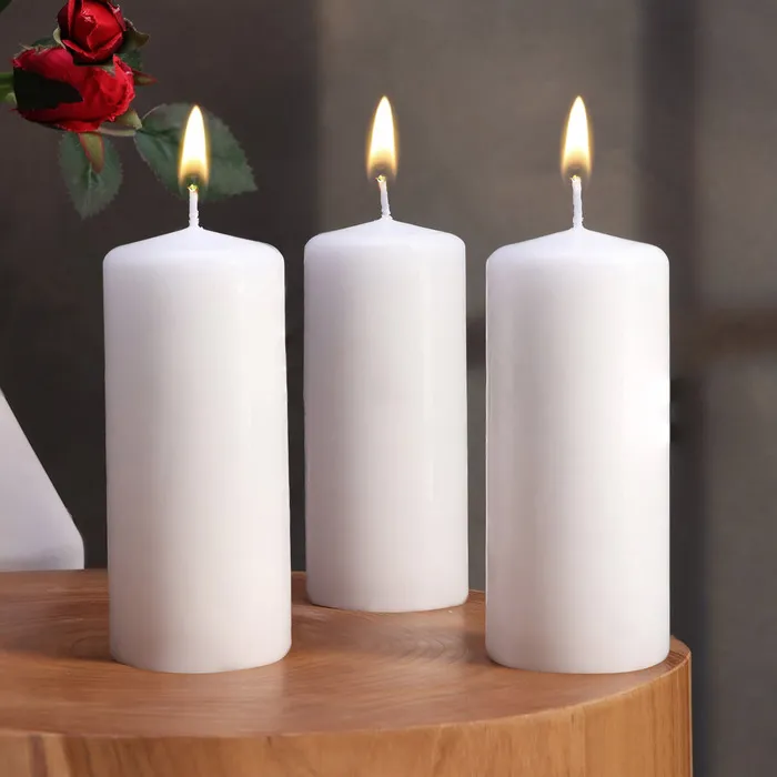 Свеча цилиндр, 5х11,5 см, набор 3 шт, белая