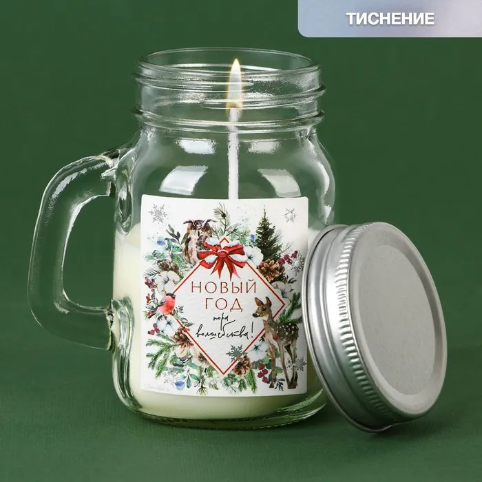 Свеча ароматическая в банке «Новый год: Пора волшебства», аромат вишня
