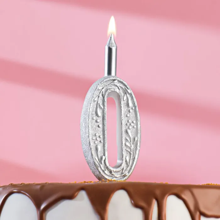 Свеча для торта цифра «Серебряный узор», 10.2 см, цифра 0