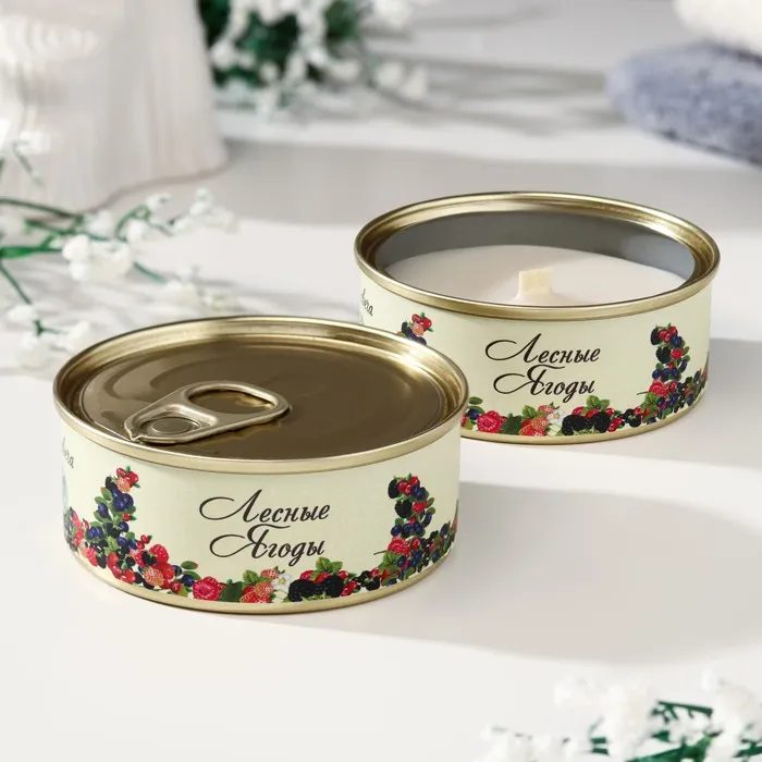 Натуральная свеча в жестяной банке из соевого воска "Лесные ягоды", 7,5х3 см