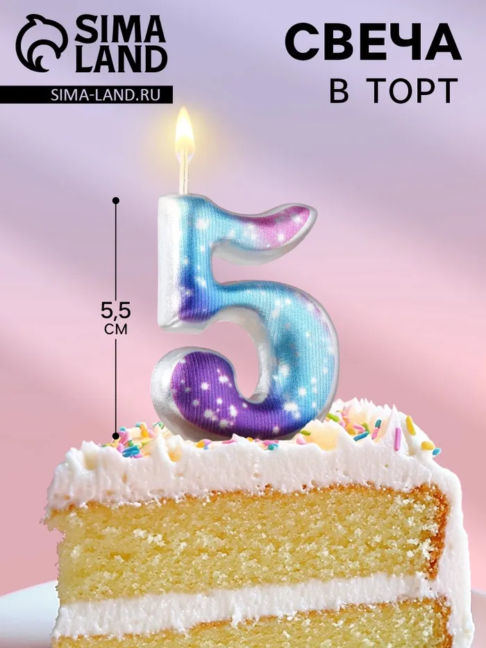 Свеча для торта цифра 5,космос, 5.5 см, 16 мин
