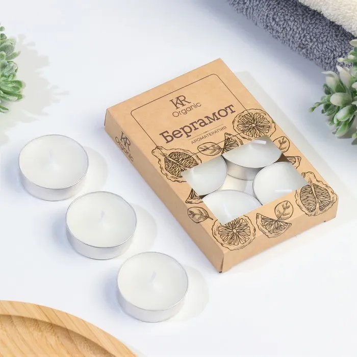 Ароматические свечи чайные «Бергамот», набор 6 шт. в подарочной коробке
