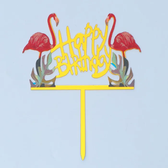 Топпер для торта «С днём рождения. Фламинго»