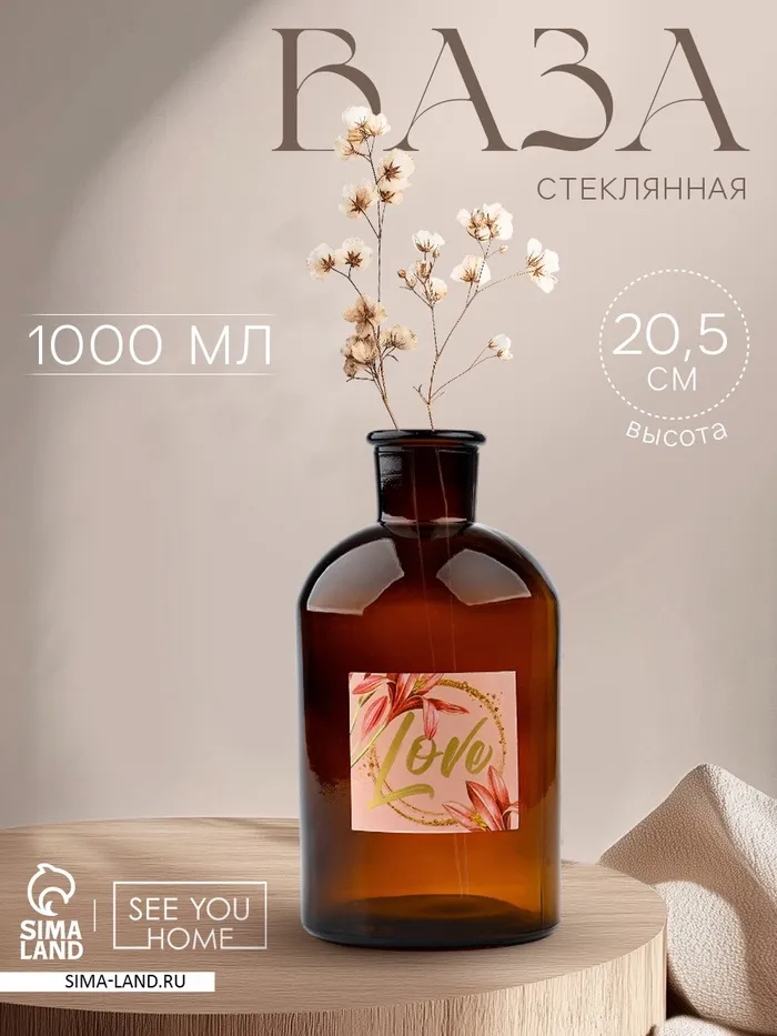 Ваза «Пуаро», большая, 700 мл, 21.5×9 см, стекло, прозрачная