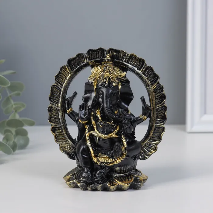 Нэцкэ фигурка «Ганеша в цветке», полистоун, 7.5×11×12.5 см