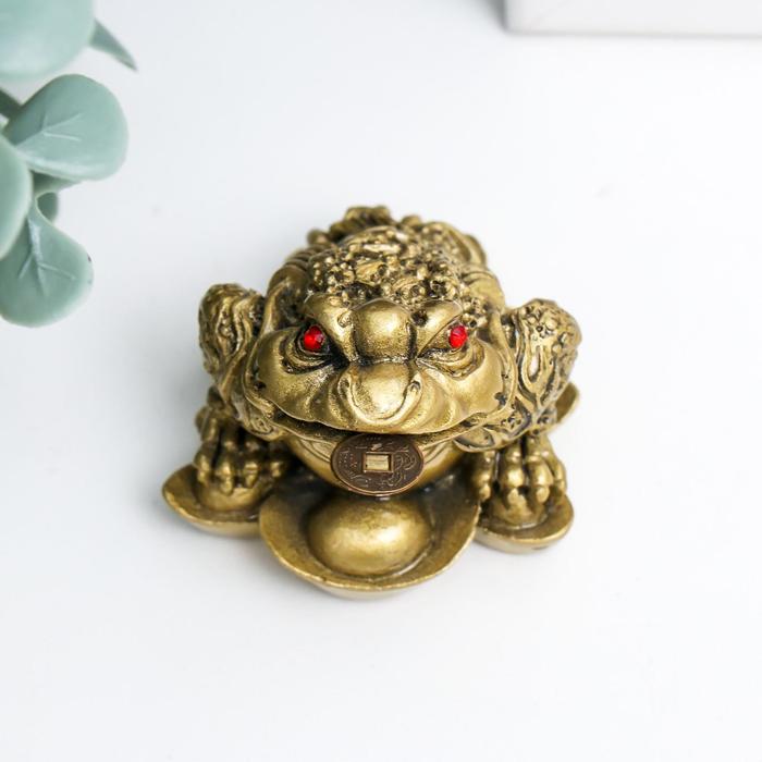 Нэцкэ фигурка «Жаба на слитках», полистоун, под бронзу, 4×3.5×3.5 см