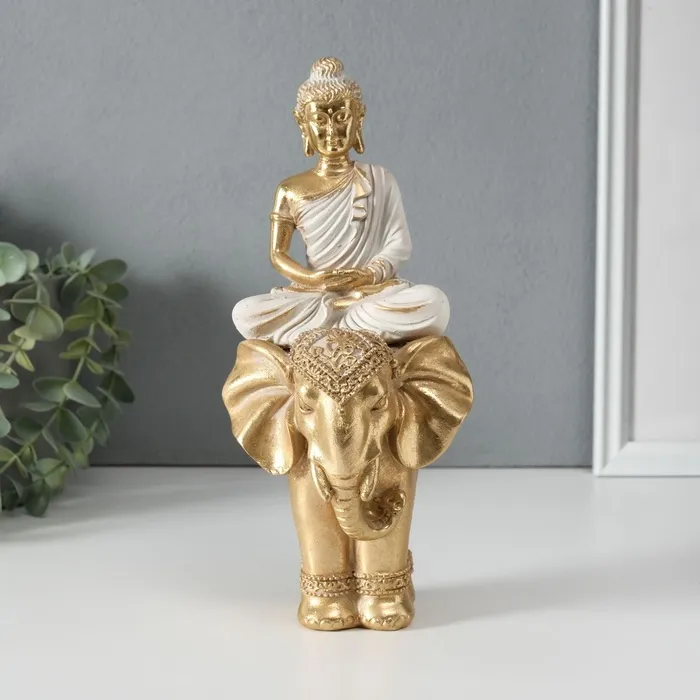 Сувенир полистоун "Будда Шакьямуни на золотом слоне" 11х10х25 см