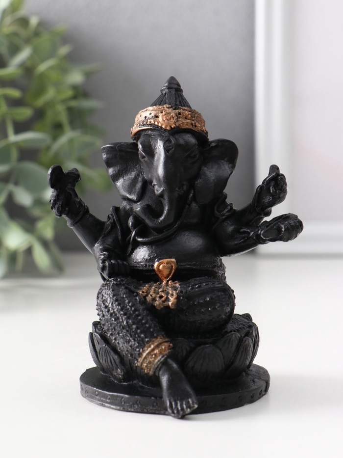 Фигурка гипс «Ганеша на лотосе», 10.5×9×8 см, чёрная