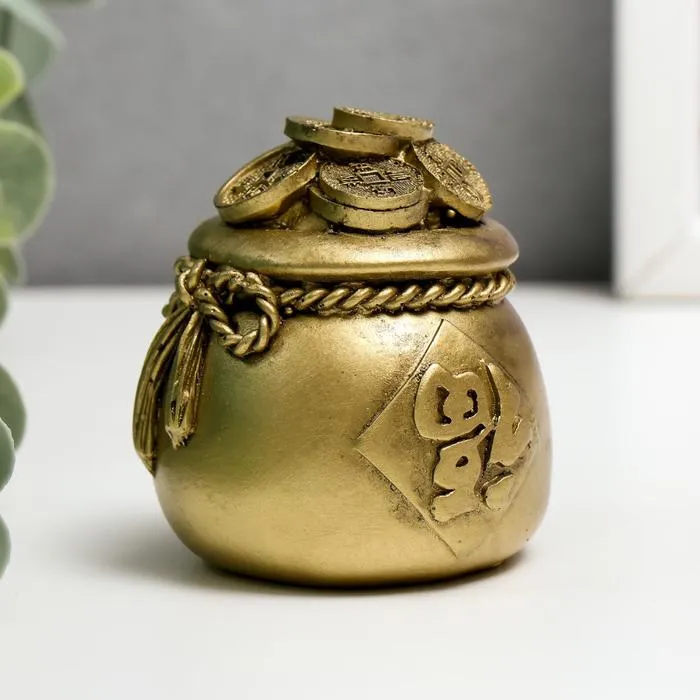 Нэцкэ фигурка «Мешочек с монетами», полистоун, под бронзу, 6.5×5.5×5.5 см