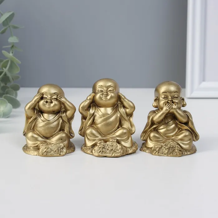 Нэцкэ фигурка «Маленький Будда. Не вижу, не слышу, не скажу», полистоун, набор 3 шт., 4.6×6 см