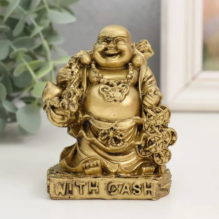 Нэцкэ фигурка полистоун «Хотей с монетами. Богатство», под бронзу, 6.7×7×9.5 см