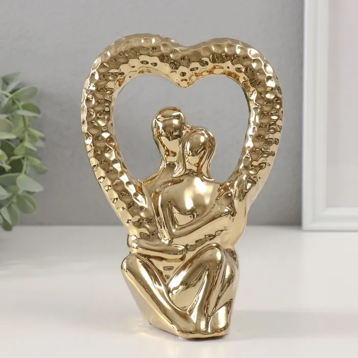 Фигурка керамика «Абстракция. Влюблённые с сердцем», золото, 13×7×18.5 см