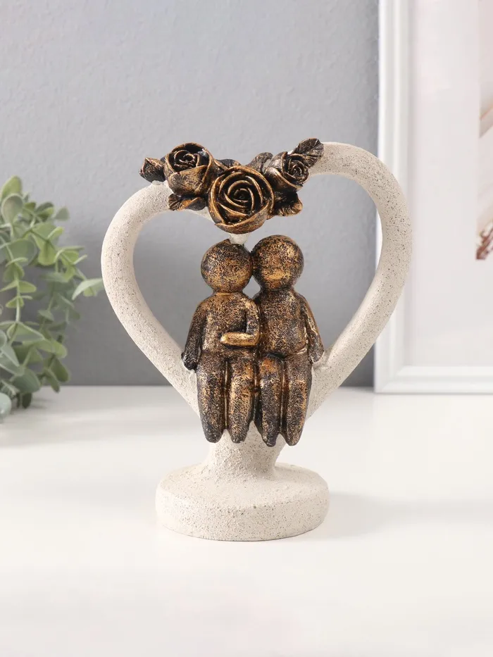 Фигурка полистоун «Влюблённые человечки в каменном сердце с розами», под бронзу, 8.8×15.7×20 см
