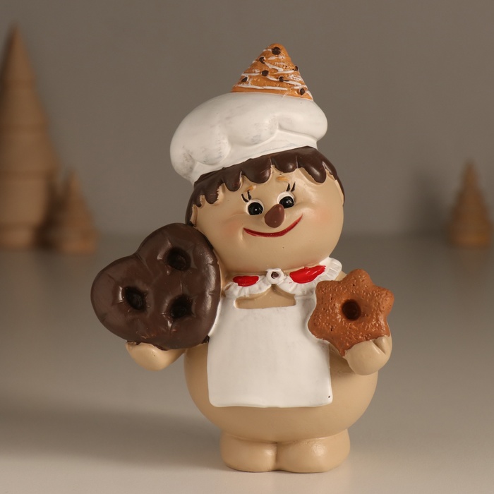 Фигурка полистоун «Снеговик-кондитер с ёлочкой на колпаке», 9×6×13 см