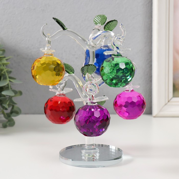 Фигурка стекло «Хрустальная яблоня с цветным яблоками», 14×14×17 см