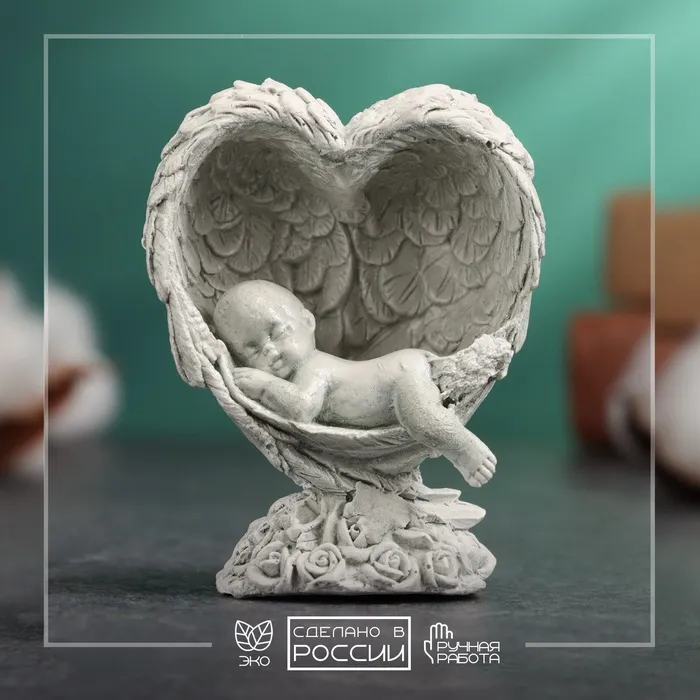 Фигурка гипс «Младенец спит в крыльях», слоновая кость, 8×5×5 см