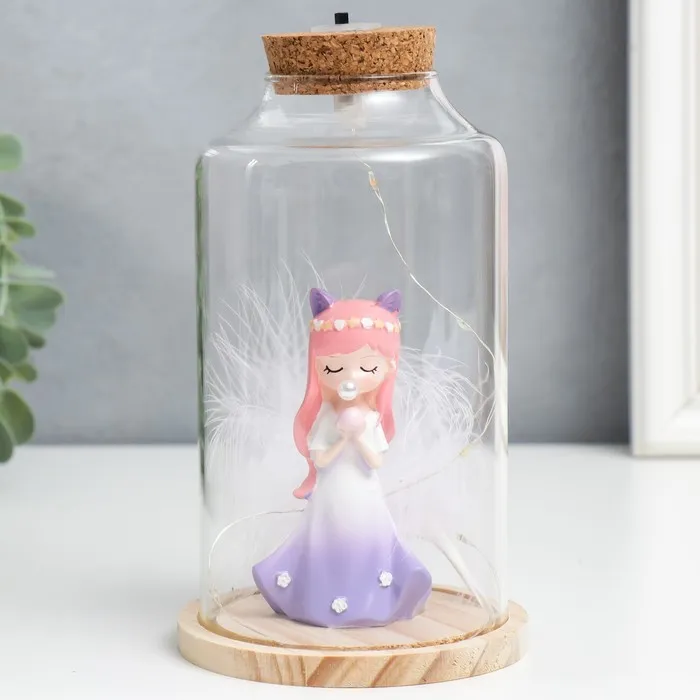 Сувенир полистоун световой "Девочка с ушками, шариком и пером" 10х10х17,5 см