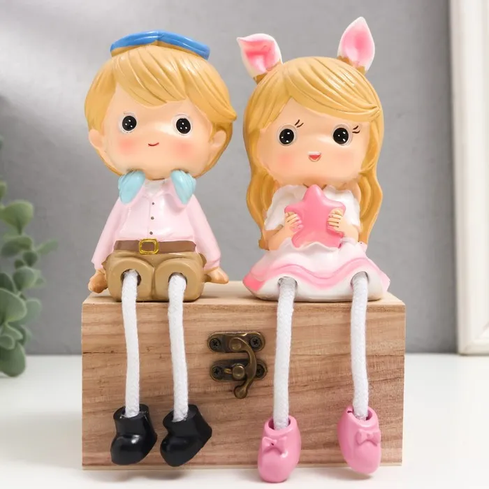 Набор фигурок полистоун «Мальчки в кепке и девочка с бантом», 2 шт., длинные ножки, 6×7×17 см