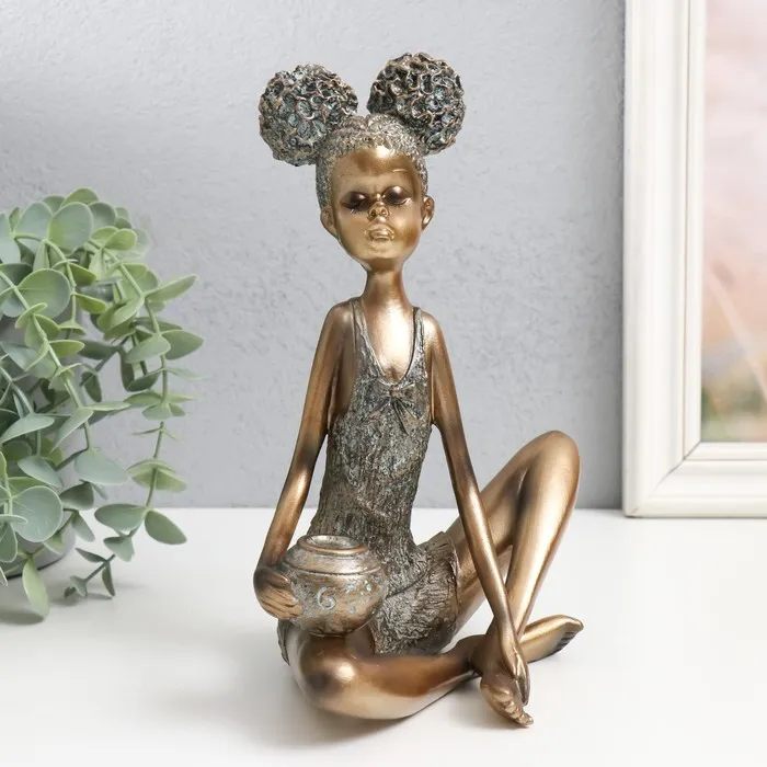 Сувенир полистоун "Девочка с кудрявыми хвостиками, с кувшином" под бронзу 16,5х13,5х21 см