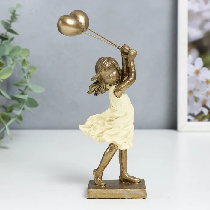 Фигурка полистоун «Малышка с воздушными шариками, жёлтое платье», 17×5×9 см