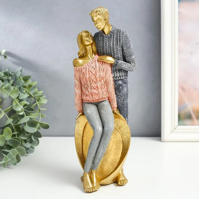 Фигурка полистоун «Влюблённая парочка и сердце, в свитерах», 10.5×8×28 см