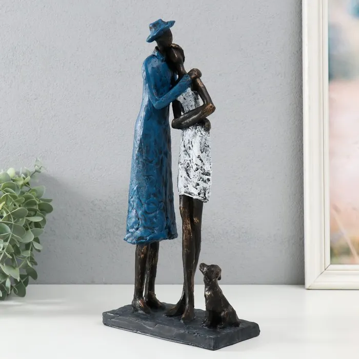 Сувенир полистоун "Парочка на прогулке с собакой" под металл 16,4х8х34,7 см